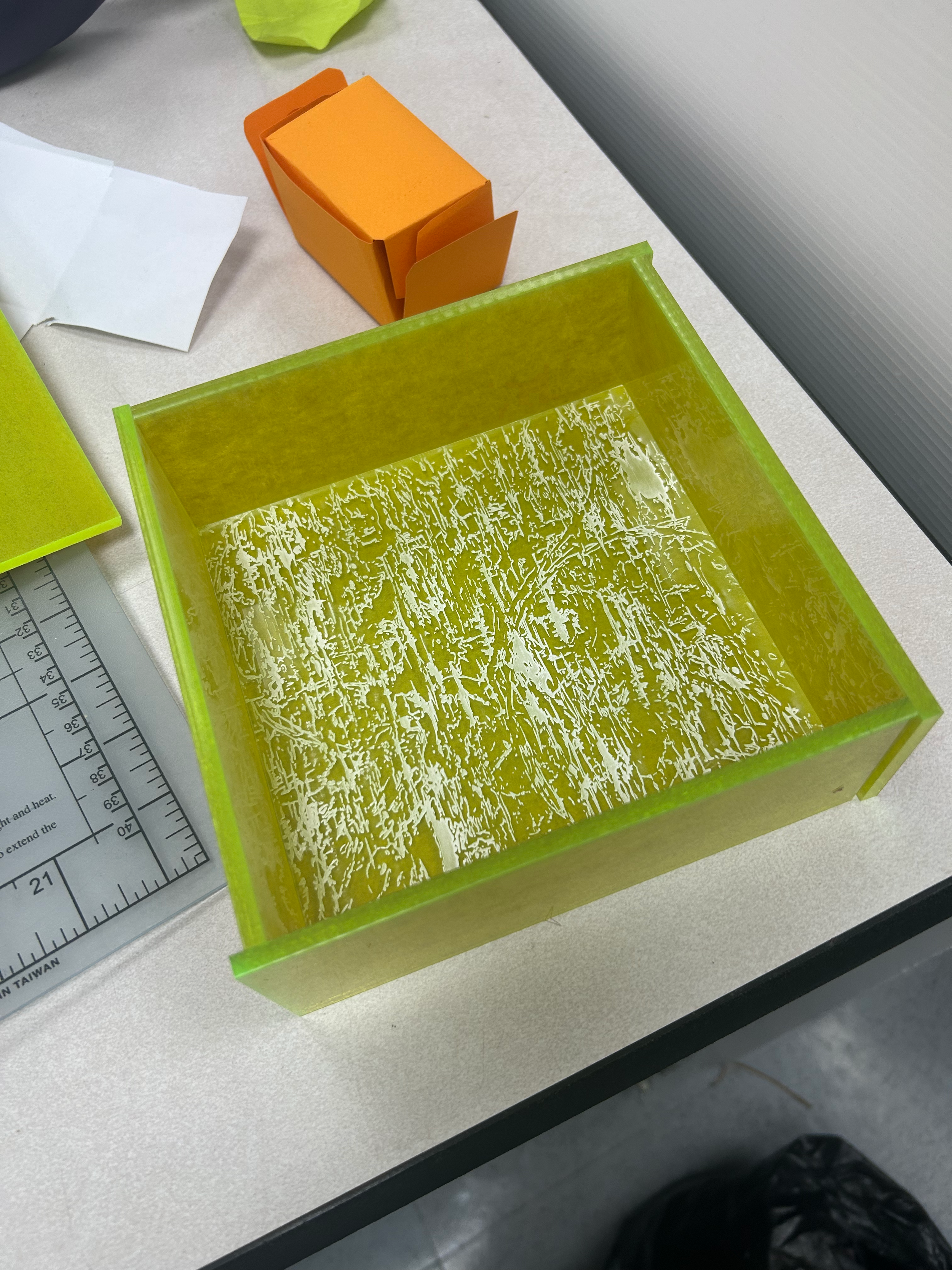 Laser engraved acrylic box. Engraved with personal artwork to represent algae growths observed in Southern California.